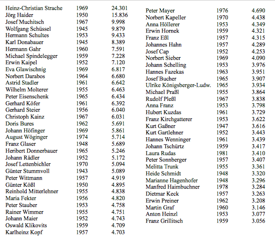 Hausaufgaben. Aber weil ich bisher eh den Großteil der Arbeit unseres gemeinsamen Forschungsprojekts gemacht hab, seid ihr jetzt dran, liebe Direktwahl-VerfechterInnen aus Niederösterreich. Hier ist das Dokument NÖ Vorzugsstimmen, wenn ihr mir die Geburtsdaten dazuschreibt und die zum Wahlzeitpunkt Unter-35-Jährigen rot markiert, stell ich das gerne hier rein.