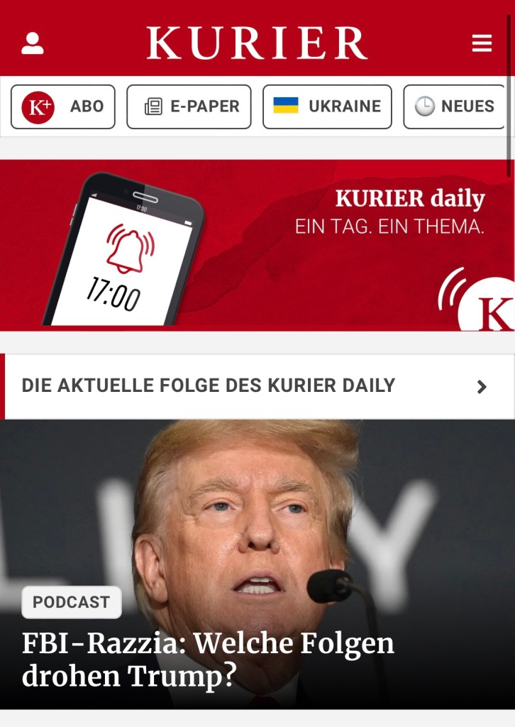 Der Kurier hat mich heute zur nächtlichen FBI-Razzia in Donald Trumps 118-Zimmer-Schloss befragt: was das politisch und juristisch bedeutet, hört ihr hier im Gespräch mit Caroline Bartos: