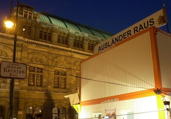 Juni 2000, vor mehr als 13 Jahren. Elfriede Jelinek, noch vor ihrem Literatur-Nobelpreis, steht auf einem Container vor der Wiener Oper. Sie hält eine Rede über den Umgang mit Fremden und mit Fremdem an sich in diesem Land. Schauplatz des Geschehens: Der „Ausländer-Raus“-Container.