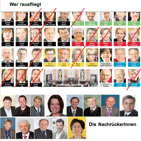 Wie würde der Tiroler Landtag aussehen, wenn ausschließlich die Vorzugsstimmen regeln würden, wer die Abgeordneten der Parteien sind? Ich hab ausgerechnet, was herauskommen würde, wenn die Mandatsverteilung auf die Parteien bliebe, aber in allen Parteien die jeweils mit dem meisten Vorzugsstimmen ausgestatteten KandidatInnen Mandate bekämen – analog zum Modell, das die ÖVP bei der Gemeinderatswahl 2012 in Innsbruck angewandt hat.